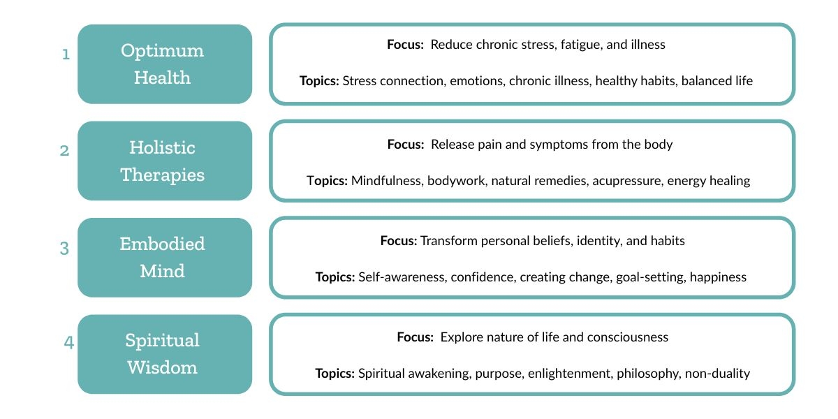I divide this journey into 4 key phases, each one exploring the mind-body connection from a different perspective.